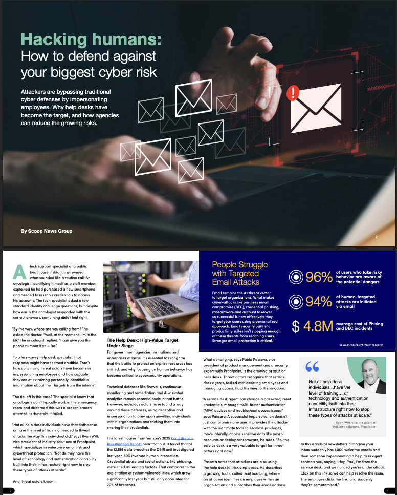 According to a new report from Scoop News Group and Proofpoint, attackers are bypassing agencies’ technical defenses by targeting employees directly through sophisticated social engineering. What’s causing growing concern: Agency help desks have emerged as a “high-value target.”